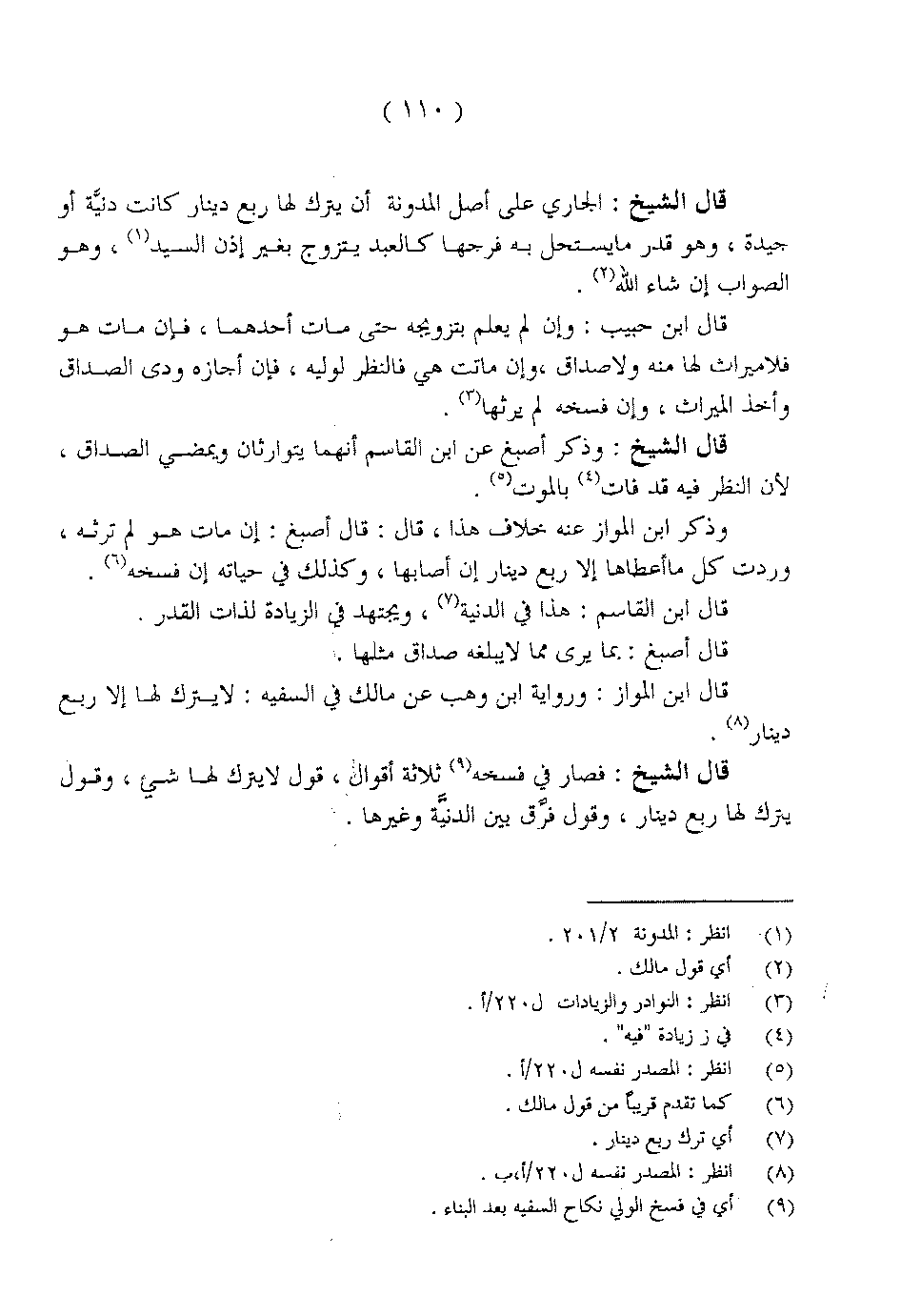 قال الشيخ: فصار في فسخه ثلاثة أقوال، قول لا يترك لها شيء، وقول يترك لها ربع دينار، وقول فرَّق بين الدنيَّة وغيرها.