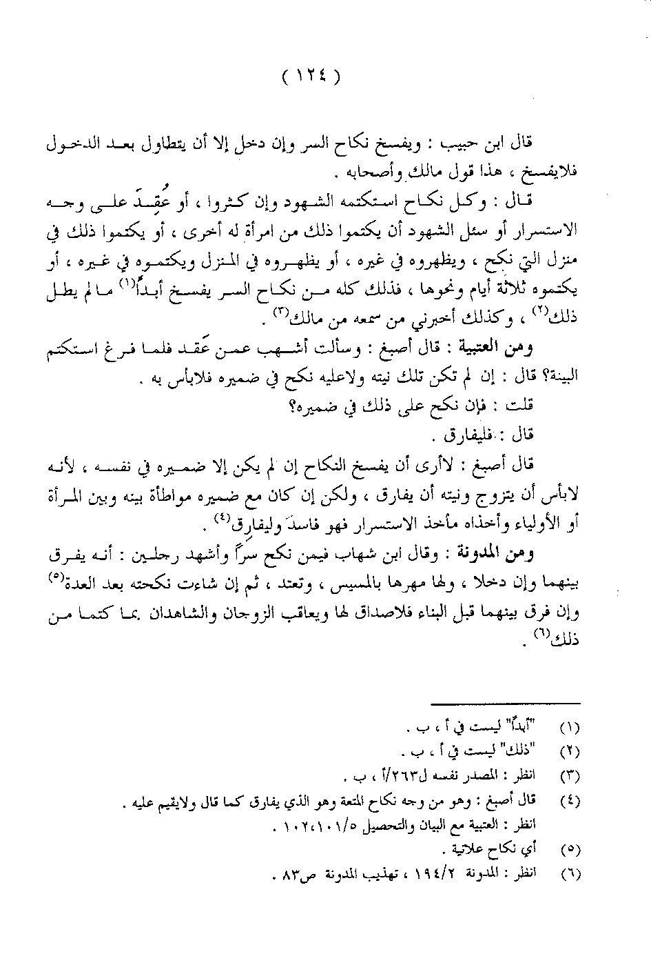 قال: وكل نكاح استكتمه الشهود وإن كثروا، أو عُقِدَ على وجه الاستسرار أو سئل الشهود أن يكتموا ذلك من امرأة له أخرى، أو يكتموا ذلك في منزل التي نكح، ويظهروه في غيره، أو يظهروه في المنزل ويكتموه في غيره، أو يكتموه ثلاثة أيام ونحوها، فذلك كله من نكاح السر يفسخ أبدًا ما لم يطل ذلك، وكذلك أخبرني من سمعه من مالك.