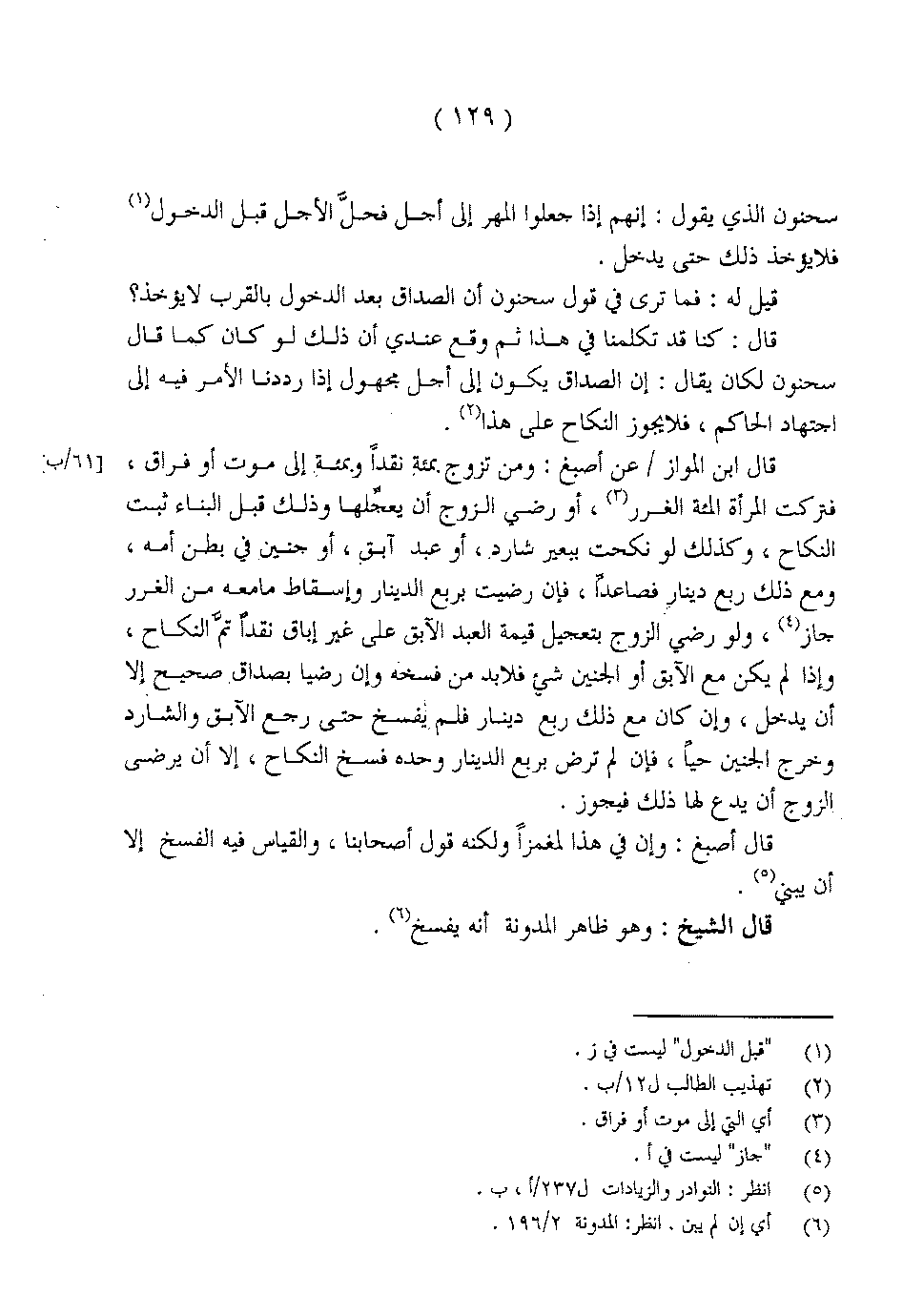 سحنون الذي يقول: إنهم إذا جعلوا المهر إلى أجل فحلَّ الأجل قبل الدخول فلا يؤخذ ذلك حتى يدخل.
