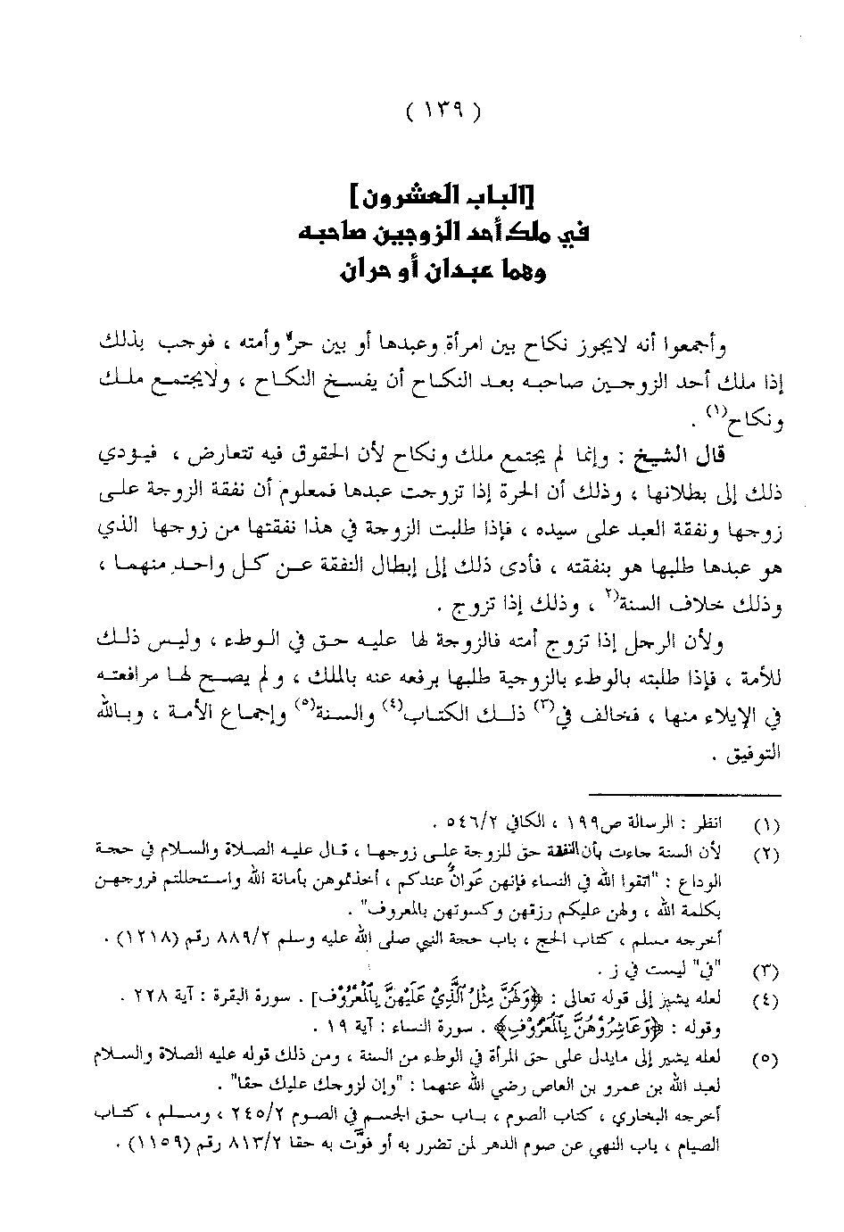 قال الشيخ: وإنما لم يجتمع ملك ونكاح لأن الحقوق فيه تتعارض، فيؤدي ذلك إلى بطلانها، وذلك أن الحرة إذا تزوجت عبدها فمعلوم أن نفقة الزوجة على زوجها ونفقة العبد على سيده، فإذا طلبت الزوجة في هذا نفقتها من زوجها الذي هو عبدها طلبها هو بنفقته، فأدى ذلك إلى إبطال النفقة عن كل واحد منهما، وذلك خلاف السنة، وذلك إذا تزوج.