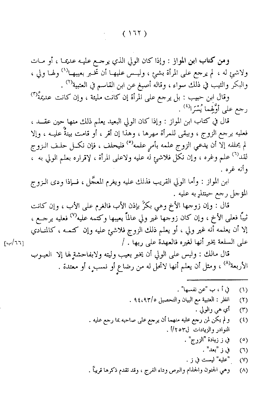قال مالك: وليس على الولي أن يخبر بعيب وليته ولا بفاحشةٍ لها إلا العيوب الأربعة، ومثل أن يعلم أنها لا تحل له من رضاعٍ أو نسبٍ، أو معتدة.