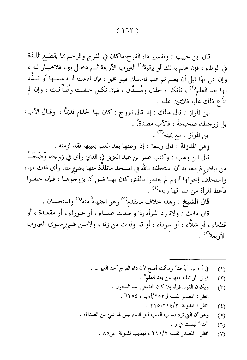 قال مالك: ولا ترد المرأة إذا وجدت عمياء، أو عوراء، أو مقعدة، أو قطعاء، أو شلَّاء، أو سوداء، أو قد ولدت من زنا، ولا من شيءٍ سوى العيوب الأربعة.