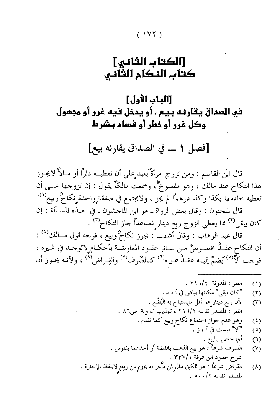 في الصداق يقارنه بيع، أو يدخل فيه غرر أو مجهول وكل غرر أو خطر أو فساد بشرط