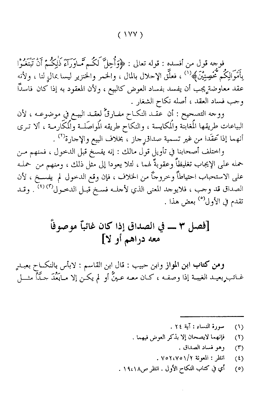 ومن كتاب ابن المواز وابن حبيب: قال ابن القاسم: لا بأس بالنكاح بعبدٍ غائبٍ بعيد الغيبة إذا وصفه، كان معه عينٌ أو لم يكن إلا ما بعد جداً مثل