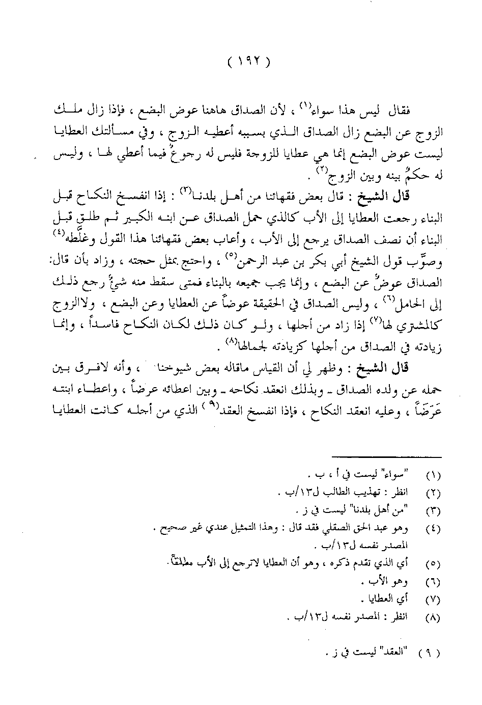 فقال ليس هذا سواء، لأن الصداق هاهنا عوض البضع، فإذا زال ملك الزوج عن البضع زال الصداق الذي بسببه أعطيه الزوج، وفي مسألتك العطايا لست عوض البضع إنما هي عطايا للزوجة فليس له رجوعٌ فيما أعطي لها، وليس له حكمٌ بينه وبين الزوج.