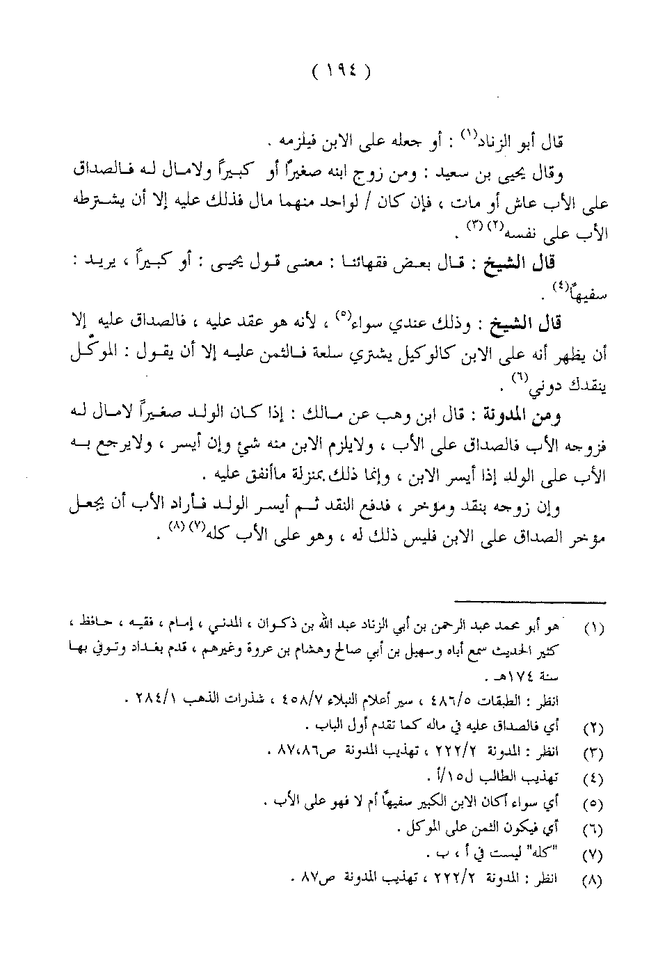 قال أبو الزناد: أو جعله على الابن فيلزمه.