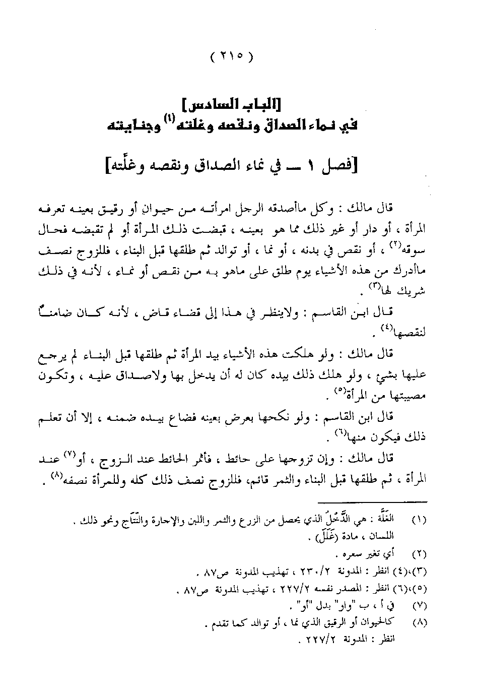 [فصل 1 - في نماء الصداق ونقصه وغلته]