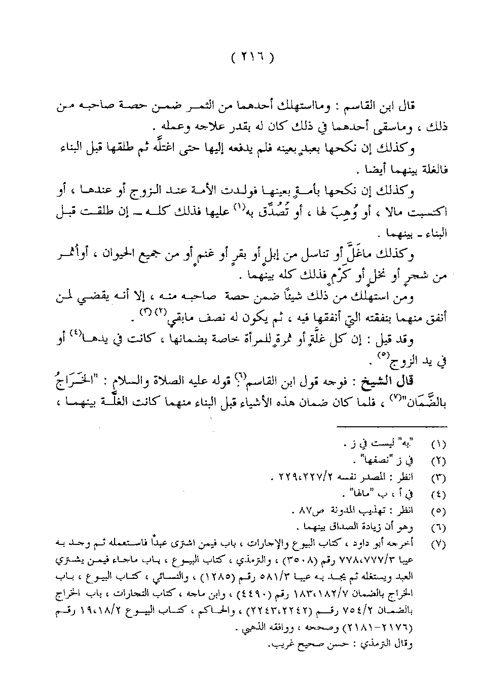 قال الشيخ: فوجه قول ابن القاسم: قوله عليه الصلاة والسلام: "الخراج بالضمان"، فلما كان ضمان هذه الأشياء قبل البناء منهما كانت الغلة بينهما،