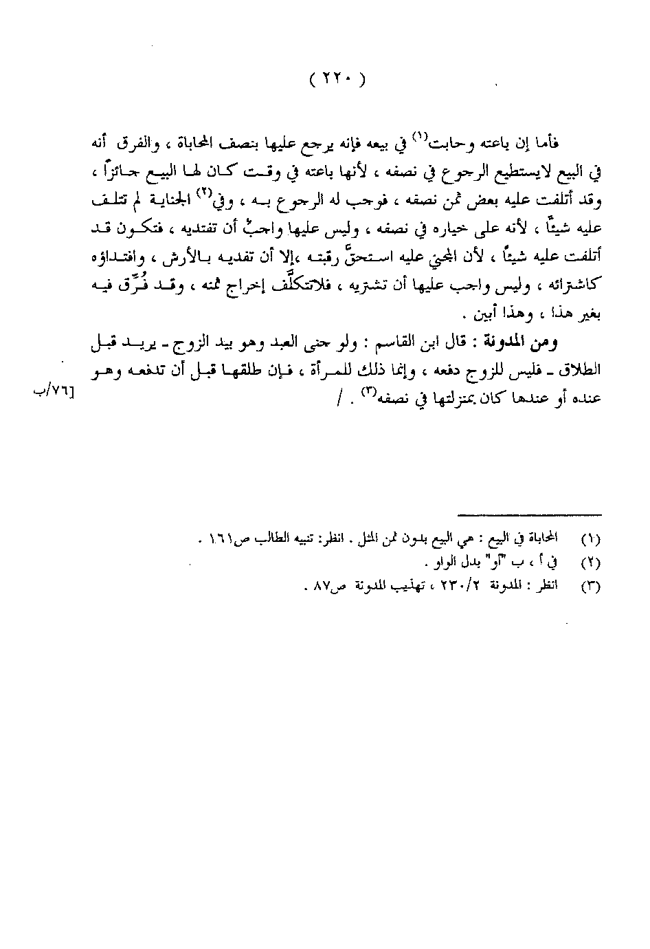 فأما إن باعته وحابت في بيعه فإنه يرجع عليها بنصف المحاباة، والفرق أنه في البيع لا يستطيع الرجوع في نصفه، لأنها باعته في وقت كان لها البيع جائزاً، وقد أتلفت عليه بعض ثمن نصفه، فوجب له الرجوع به، وفي الجناية لم تتلف عليه شيئاً، لأنه على خياره في نصفه، وليس عليها واجبٌ أن تفتديه، فتكون قد أتلفت عليه شيئاً، لأن المجني عليه استحق رقبته، إلا أن تفديه بالأرش، وافتداؤه كاشترائه، وليس واجب عليها أن تشتريه، فلا تتكلف إخراج ثمنه، وقد فرق فيه بغير هذا، وهذا أبين.