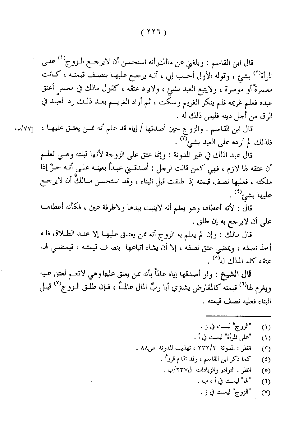 قال ابن القاسم: وبلغني عن مالكٍ أنه استحسن أن لا يرجع الزوج على المرأة بشيء، وقوله الأول أحب إلي، أنه يرجع عليها بنصف قيمته، كانت معسرة أو موسرة، ولا يتبع العبد بشيء، ولا يرد عتقه، كقول مالك في معسر أعتق عبده فعلم غريمه فلم ينكر الغريم وسكت، ثم أراد الغريم بعد ذلك رد العبد في الرق من أجل دينه فليس ذلك له.