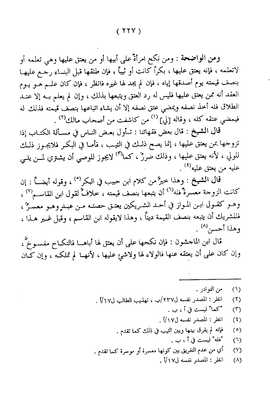 قال الشيخ: وهذا خير من كلام ابن حبيب في البكر، وقوله أيضاً: إن كانت الزوجة معسرة فله أن يتبعها بنصف قيمته، خلاف لقول ابن القاسم، وهو كقول ابن المواز في أحد الشريكين يعتق حصته من عبد وهو معسر، فللشريك أن يتبعه بنصف القيمة ديناً، وهذا لا يقوله ابن القاسم، وقيل غير هذا، وهذا أحسن.
