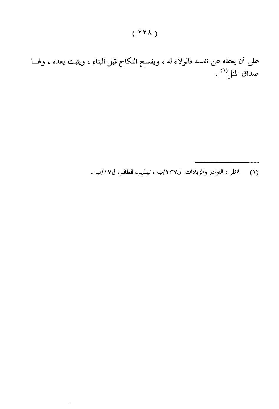 على أن يعتقه عن نفسه فالولاء له، ويفسخ النكاح قبل البناء، ويثبت بعده، ولها صداق المثل.