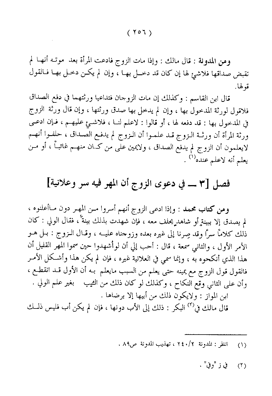 قال ابن القاسم: وكذلك إن مات الزوجان فتداعيا ورثتهما في دفع الصداق فلا قول لورثة المدخول بها، وإن لم يدخل بها صدق ورثتها، وإن قال ورثة الزوج في المدخول بها: قد دفعه لها، أو قالوا: لا علم لنا، فلا شيء عليهم، فإن ادعى ورثة المرأة أن ورثة الزوج قد علموا أن الزوج لم يدفع الصداق، حلفوا أنهم لا يعلمون أن الزوج لم يدفع الصداق، ولا يمين على من كان منهم غائباً، أو من يعلم أنه لا علم عنده.
