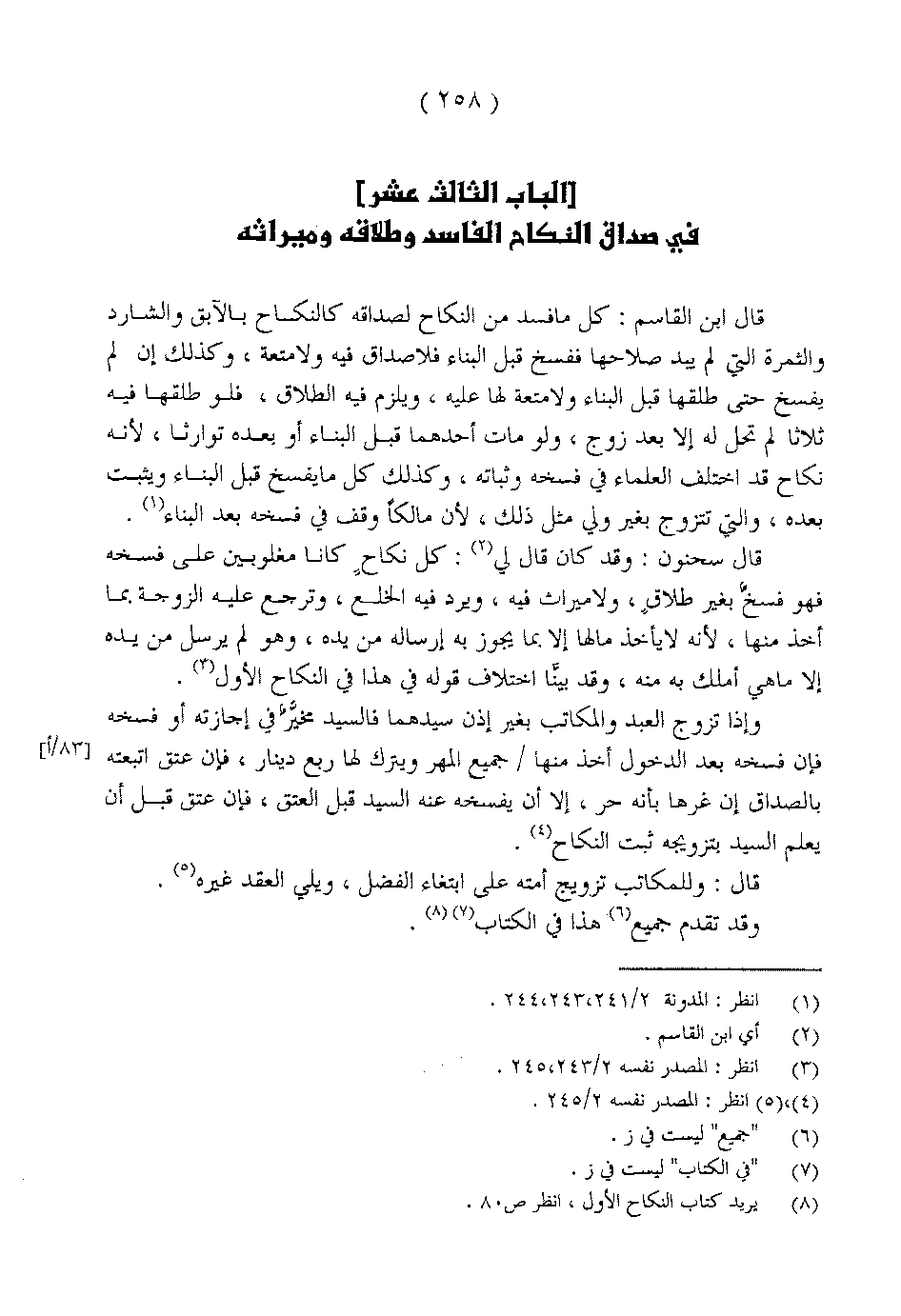 في صداق النكاح الفاسد وطلاقه وميراثه