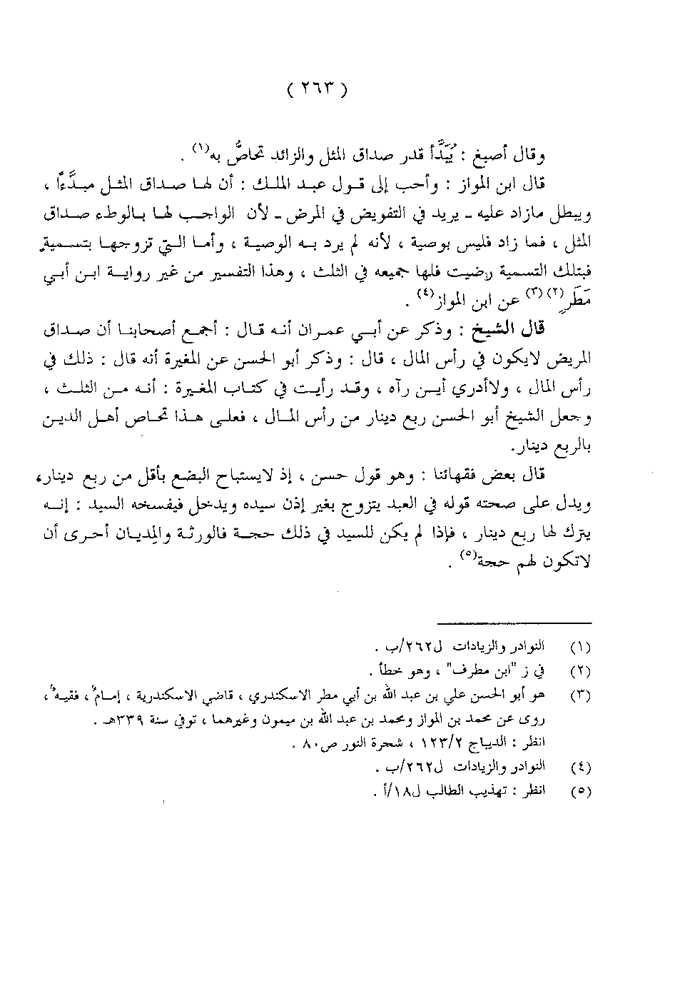 قال الشيخ: وذكر عن أبي عمران أنه قال: أجمع أصحابنا أن صداق المريض لا يكون في رأس المال، قال: وذكر أبو الحسن عن المغيرة أنه قال: ذلك في رأس المال، ولا أدري أين رآه، وقد رأيت في كتاب المغيرة: أنه من الثلث، وجعل الشيخ أبو الحسن ربع دينار من رأس المال، فعلى هذا تحاص أهل الدين بالربع دينار.