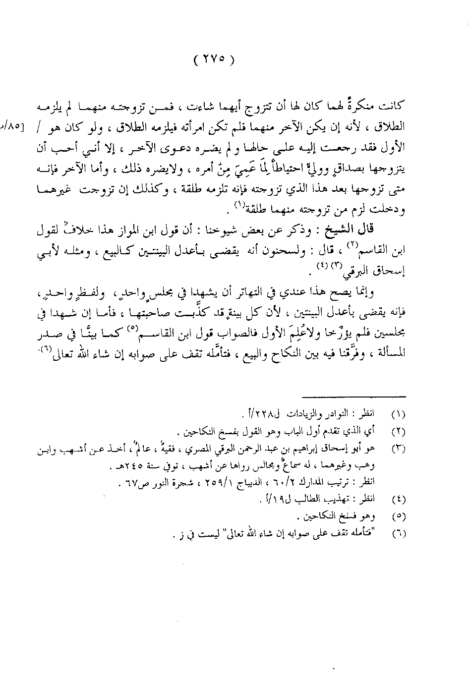 قال الشيخ: وذكر عن بعض شيوخنا: أن قول ابن المواز هذا خلاف لقول ابن القاسم، قال: ولسحنون أنه يقضي بأعدل البينتين كالبيع، ومثله لأبي إسحاق البرقي.