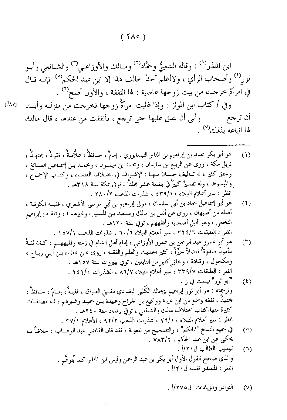 ابن المنذر: وقاله الشعبي وحماد ومالك والأوزاعي والشافعي وأبو ثور وأصحاب الرأي، ولا أعلم أحدًا خالف هذا إلا ابن عبد الحكم فإنه قال في امرأةٍ خرجت من بيت زوجها عاصية: لها النفقة، والأول أصح.