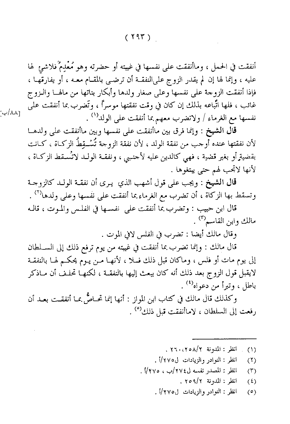 قال الشيخ: ويجب على قول أشهب الذي يرى أن نفقة الولد كالزوجة وتسقط بها الزكاة، أن تضرب مع الغرماء بما أنفقت على نفسها وعلى ولدها.