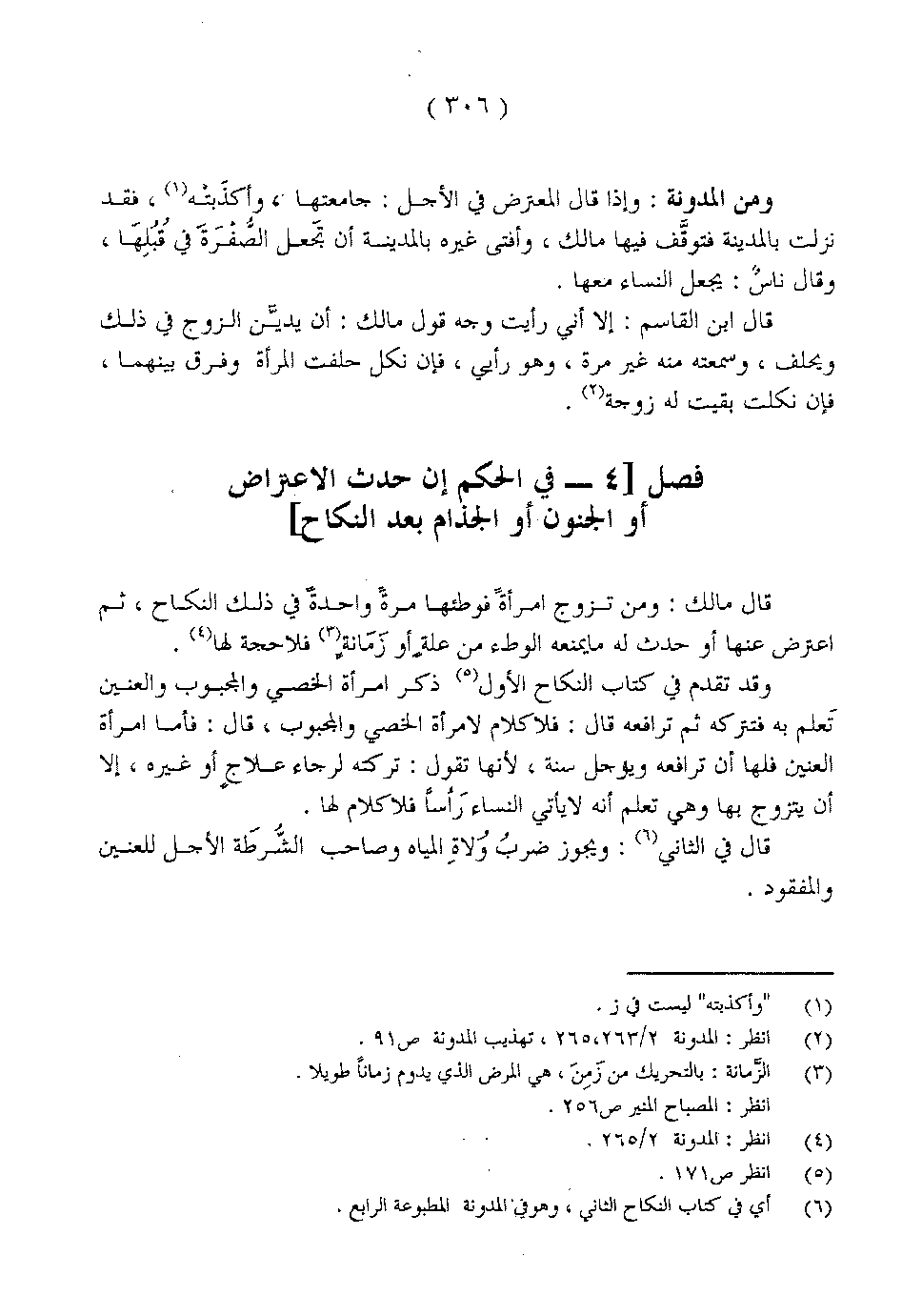 وقد تقدم في كتاب النكاح الأول ذكر امرأة الخصي والمجبوب والعنين تعلم به فتتركه ثم ترافعه قال: فلا كلام لامرأة الخصي والمجبوب، قال: فأما امرأة العنين فلها أن ترافعه ويؤجل سنة، لأنها تقول: تركته لرجاء علاجٍ أو غيره، إلا أن يتزوج بها وهي تعلم أنه لا يأتي النساء رأساً فلا كلام لها.