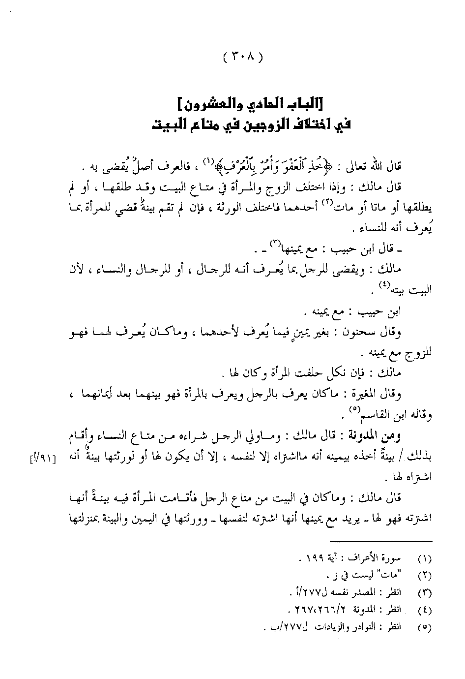 وقال سحنون: بغير يمينٍ فيما يعرف لأحدهما، وما كان يعرف لهما فهو للزوج مع يمينه.