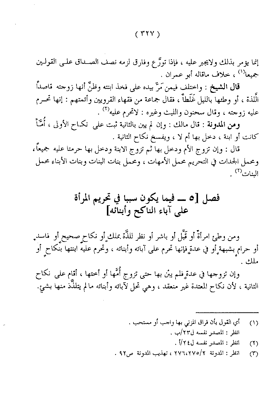 ومن وطئ امرأةً أو قَبَّل أو باشر أو نظر للذَّة بملكٍ أو نكاحٍ صحيحٍ أو فاسدٍ أو حرامٍ بشبهةٍ أو في عدة فإنها تحرم على آبائه وأبنائه، وتحرم عليه ابنتها بنكاحٍ أو ملك.