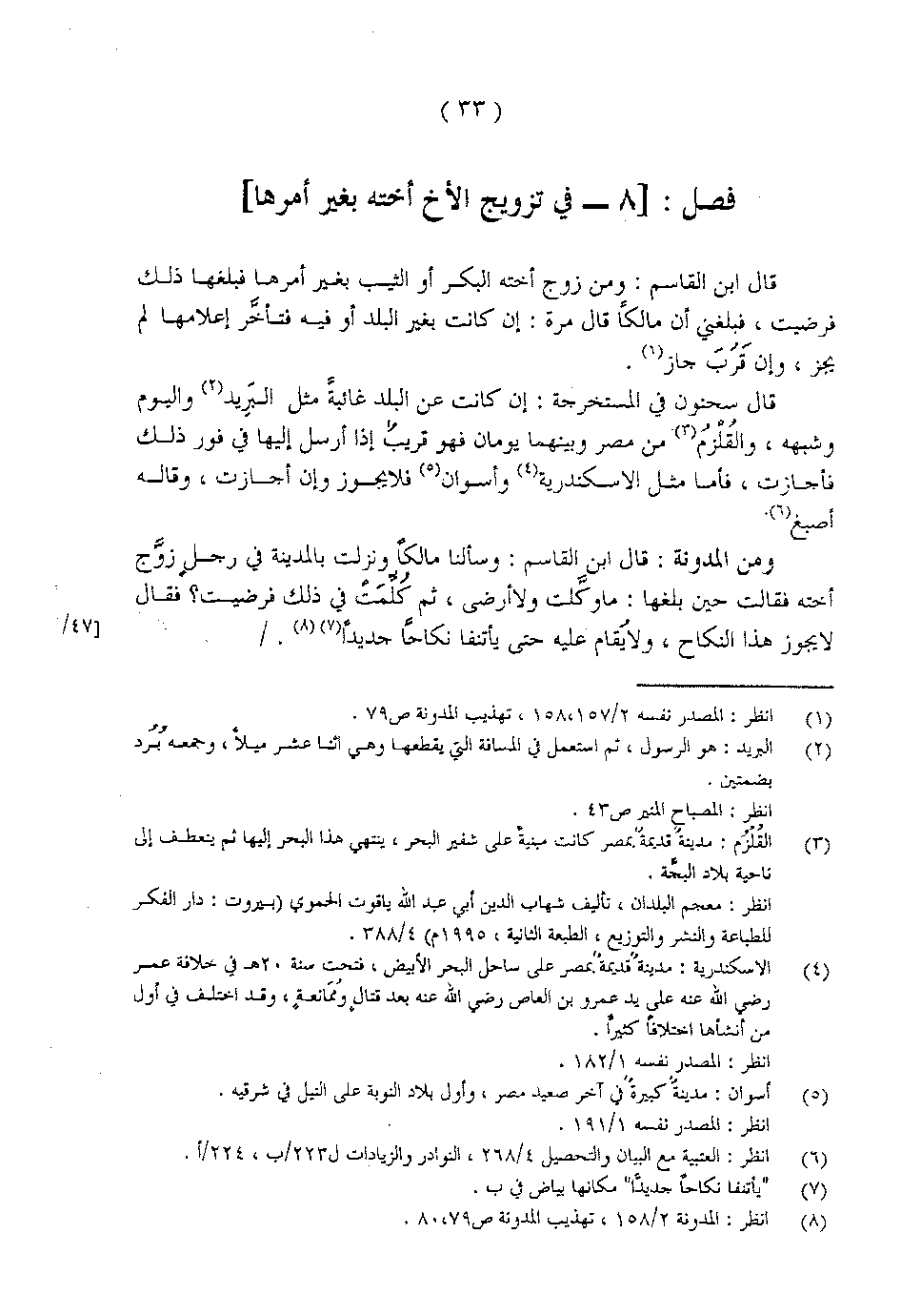 قال سحنون في المستخرجة: إن كانت عن البلد غائبةً مثل البَرِيد واليوم وشبهه، والقُلْزُم من مصر وبينهما يومان فهو قريبٌ إذا أرسل إليها في فور ذلك فأجازت، فأما مثل الإسكندرية وأسوان فلا يجوز وإن أجازت، وقاله أصبغ.