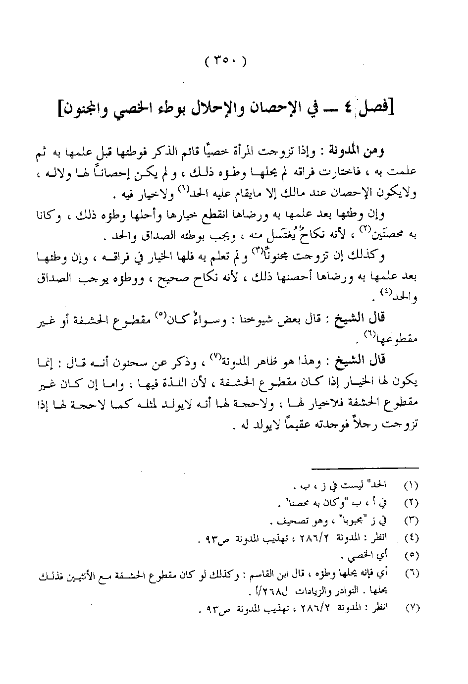 [فصل 4 - في الإحصان والإحلال بوطء الخصي والمجنون]
