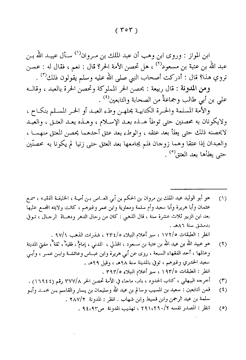 ابن المواز: وروى ابن وهب أن عبد الملك بن مروان سأل عبيد الله بن عبد الله بن عتبة بن مسعود، هل تحصن الأمة الحر؟ قال: نعم، فقال له: عمن تروي هذا؟ قال: أدركت أصحاب النبي صلى الله عليه وسلم يقولون ذلك.