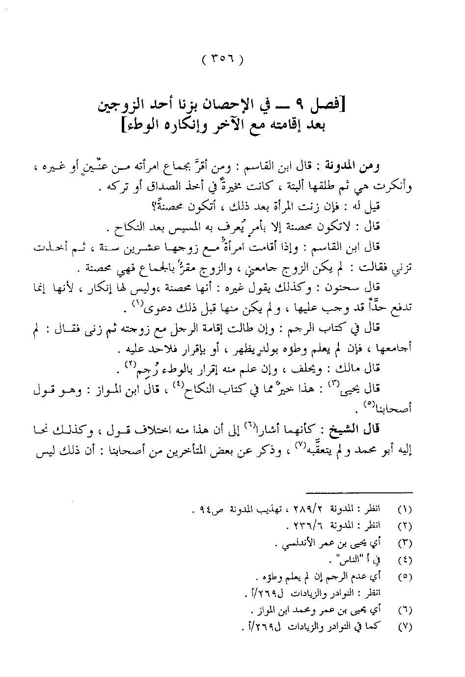 [فصل 9 - في الإحصان بزنا أحد الزوجين بعد إقامته مع الآخر وإنكاره الوطء]