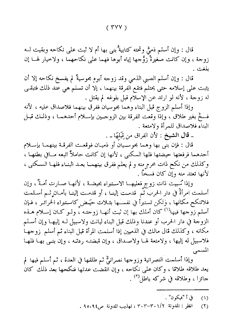 قال: وإن أسلن الصبي الذمي وقد زوجه أبوه مجوسية لم بفسخ نكاحه فسخ نكاحه إلا أن يثبت على إسلامه حتى يحتلم فتقع الفرقة بينهما، إلا أن تسلم هي عند ذلك فتبقى له زوجة، لأنه لو أرتد عن الإسلام قبل بلوغه لم يقتل.