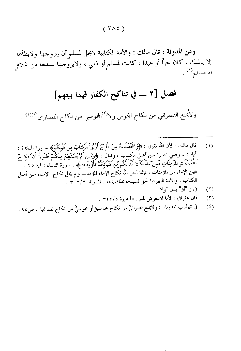 ومن المدونة: قال مالك: والأمة الكتابية لا يحل لمسلم أن يتزوجها ولا يطأها إلا بملك اليمين، كان حراً أو عبداً كانت لمسلم أو ذمي، ولا يزوجها سيدها من غلام له مسلم.
