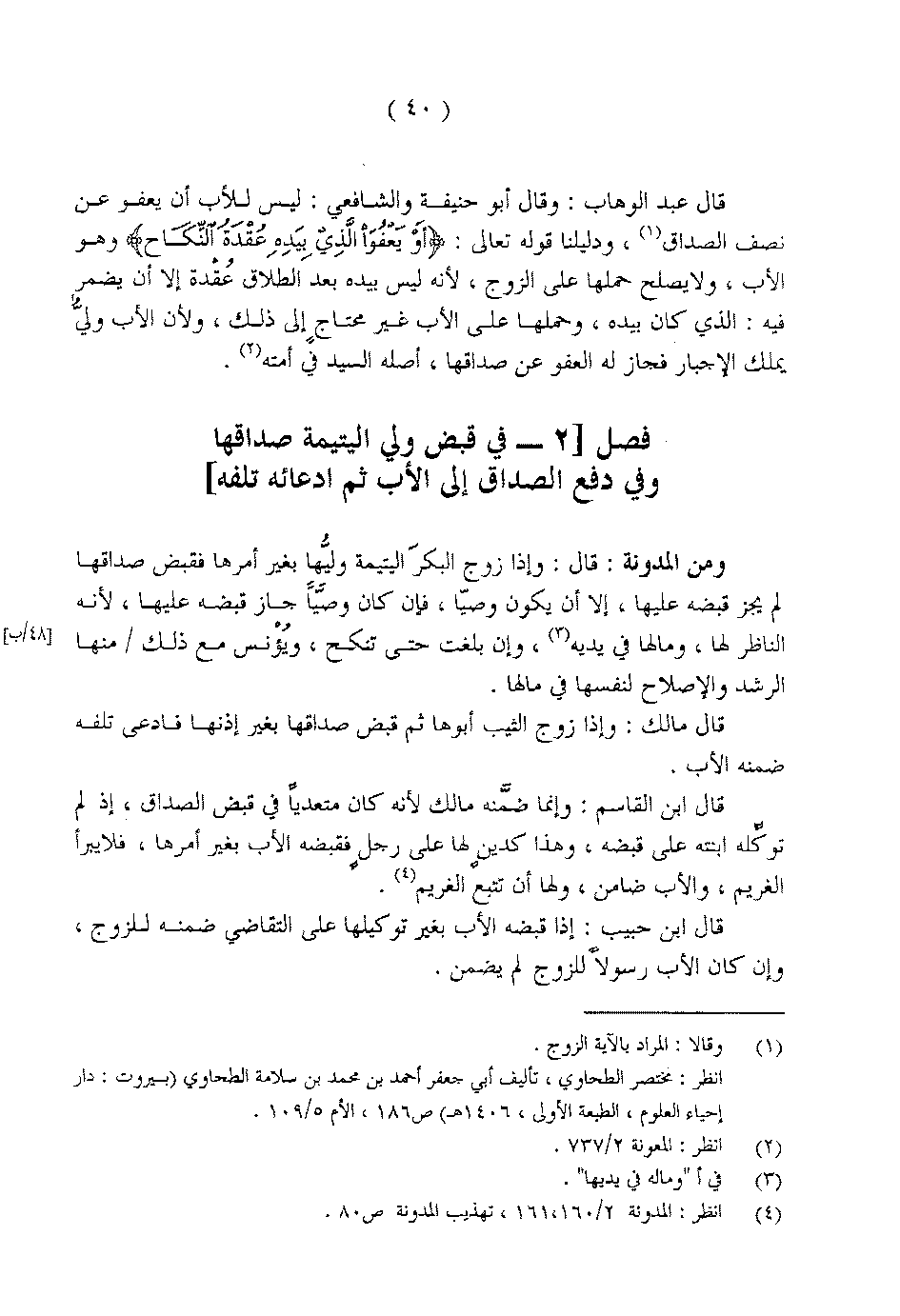 فصل [2 - في قبض ولي اليتيمة صداقها