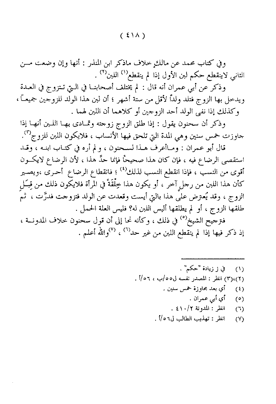 قال أبو عمران: وما أعرف هذا لسحنون, ولم أره في كتاب ابنه, وقد استقصى الرضاع فيه, فإن كان هذا صحيحاً فإنما حدَّ هذا, لأن الرضاع لا يكون أقوى من النسب, فإذا انقطع النسب لذلك؛ فانقطاع الرضاع أحرى, ويصير كأن هذا اللبن من رجلٍ آخر, أو يكون هذا خِلّقَةً في المرأة فلا يكون ذلك من قِبَلِ الزوج, وقد يُعترض على هذا بالتي أيست وقعدت عن الولد فتزوجت فدرَّت, ثم طلقها الزوج, أو لم يطلقها أليس اللبن له؟ فليس العلة الحمل.