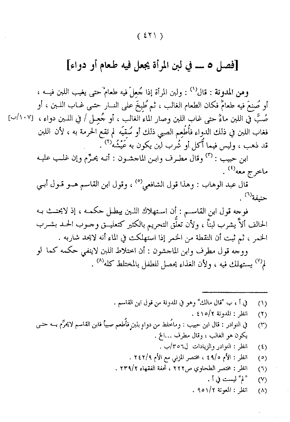 [فصل 5 - في لبن المرأة يجعل فيه طعام أو دواء]