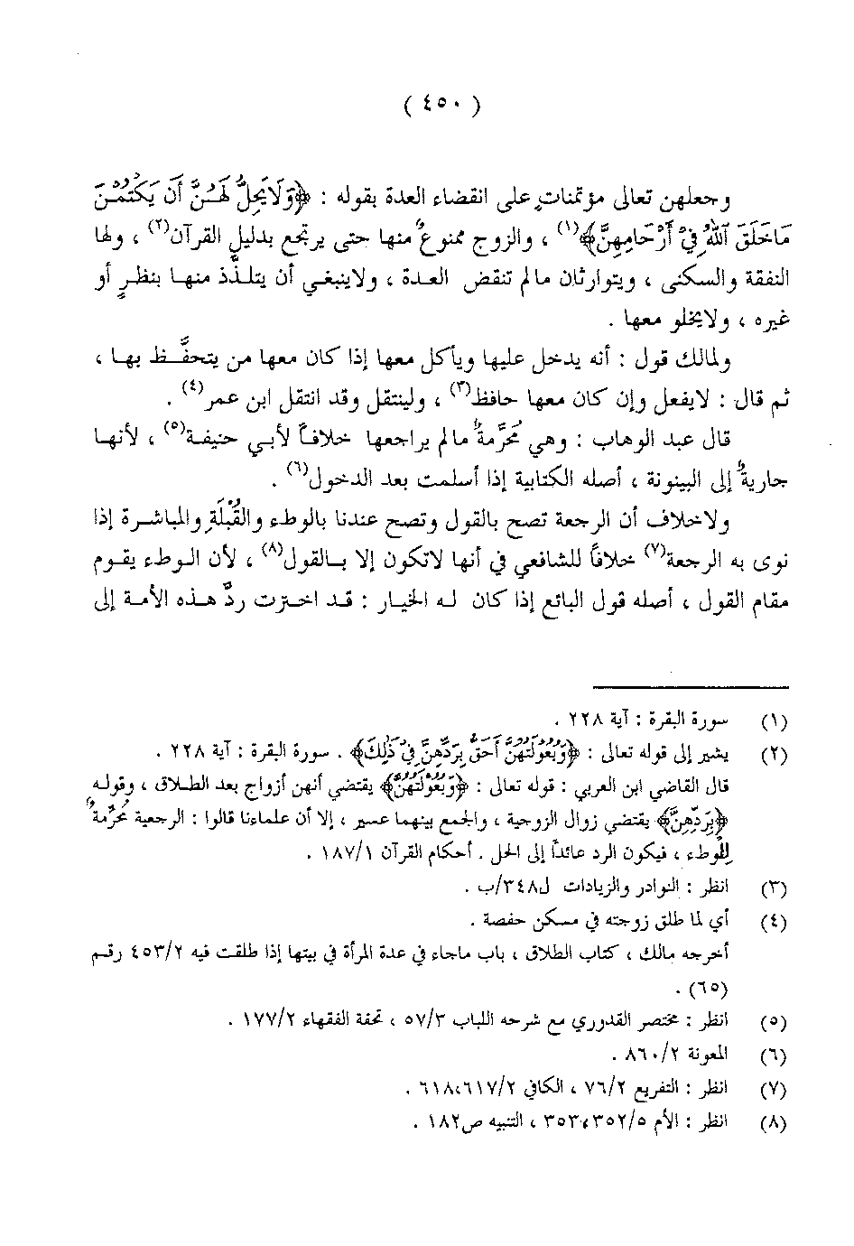 وجعلهن تعالى مؤتمناتٍ على انقضاء العدة بقوله: {وَلا يَحِلُّ لَهُنَّ أَنْ يَكْتُمْنَ مَا خَلَقَ اللَّهُ فِي أَرْحَامِهِنَّ} [البقرة:228] , والزوج ممنوعً منها حتى يرتجع بدليل القرآن, ولها النفقة والسكنى, ويتوارثان ما لم تنقض العدة, ولا ينبغي أن يتلذَّذ منها بنظرٍ أو غيره, ولا يخلو معها.