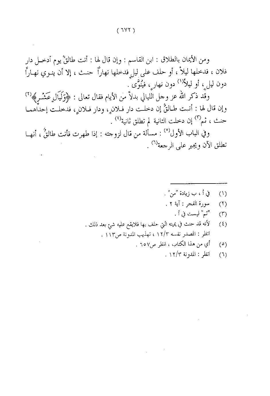 ومن الأيمان بالطلاق: ابن القاسم: وإن قال لها: أنت طالق يوم أدخل دار فلان، فدخلها ليلاً، أو حلف على ليل فدخلها نهارًا حنث، إلا أن ينوي نهارًا دون ليل، أو ليلاً دون نهار، فينُوى.