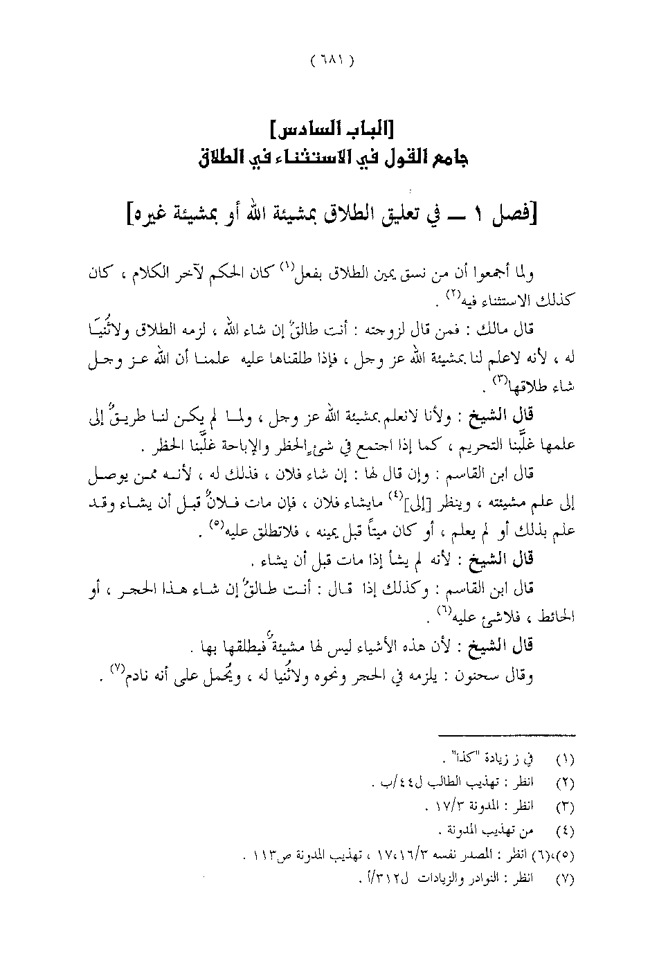 [فصل 1 - في تعليق الطلاق بمشيئة الله أو بمشيئة غيره]