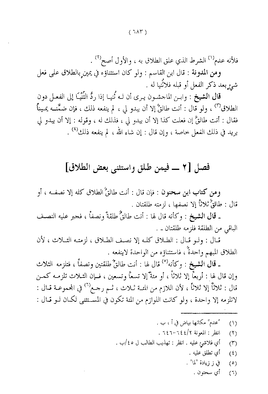 ومن كتاب ابن سحنون: فإن قال: أنت طالق الطلاق كله إلا نصفه، أو قال: طالق ثلاثًا إلا نصفها، لزمته طلقتان.