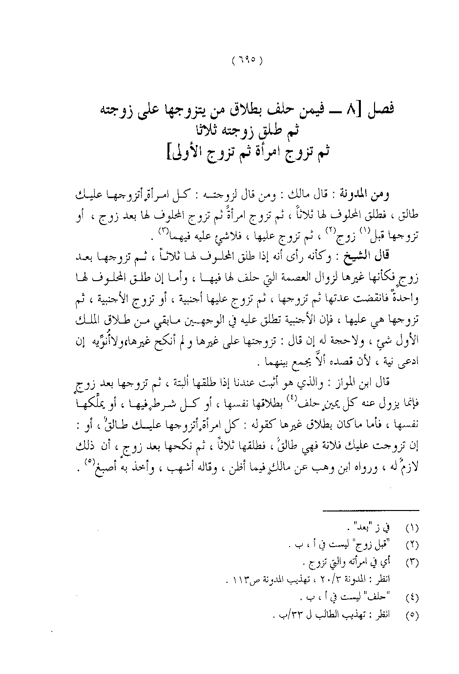 قال الشيخ: وكأنه رأى أنه إذا طلق المحلوف لها ثلاثاً، ثم تزوجها بعد زوجٍ فكأنها غيرها لزوال العصمة التي حلف لها فيها، وأما إن طلق المحلوف لها واحدةً فانقضت عدتها ثم تزوجها، ثم تزوج عليها أجنبية، أو تزوج الأجنبية، ثم تزوجها هي عليها، فإن الأجنبية تطلق عليه في الوجهين ما بقي من طلاق الملك الأول شيء، ولا حجة له إن قال: توجتها على غيرها ولم أنكح غيرها، ولا أنويه إن ادعى نية، لأن قصده ألا يجمع بينهما.