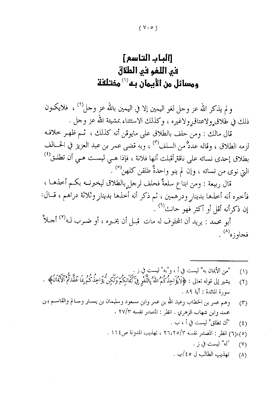 ولم يذكر الله عز وجل لغو اليمين إلا في اليمين بالله عز وجل، فلا يكون ذلك في طلاقٍ ولا غيره، وكذلك الاستثناء بمشيئة الله عز وجل.