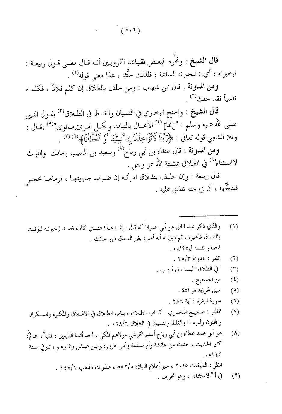 قال الشيخ: واحتج البخاري في النسيان والغلط في الطلاق بقول النبي صلى الله عليه وسلم:» [إنما] الأعمال بالنيات ولكل امرئٍ ما نوى «، قال: وتلا الشعبي قوله تعالى: {رَبَّنَا لا تُؤَاخِذْنَا إِنْ نَسِينَا أَوْ أَخْطَانَا} [البقرة: 286].