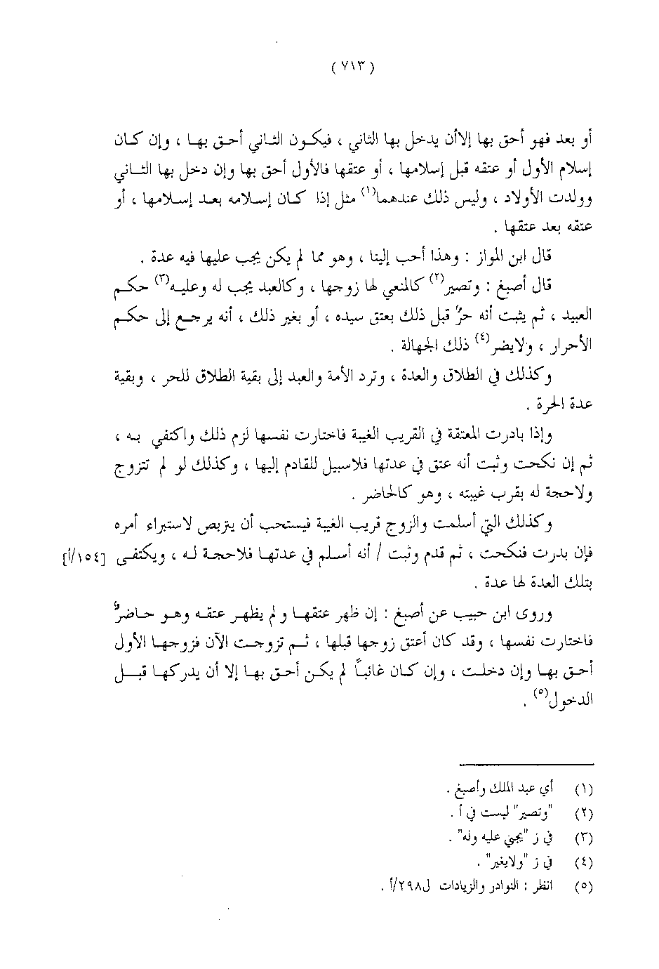 قال أصبغ: وتصير كالمنعي لها زوجها، وكالعبد يجب له وعليه حكم العبيد، ثم يثبت أنه حرٌ قبل ذلك بعتق سيده، أو بغير ذلك، أنه يرجع إلى حكم الأحرار، ولا يضر ذلك الجهالة.