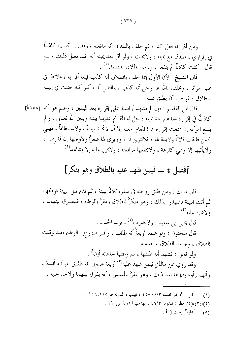 [فصل 4 - فيمن شهد عليه بالطلاق وهو ينكر]
