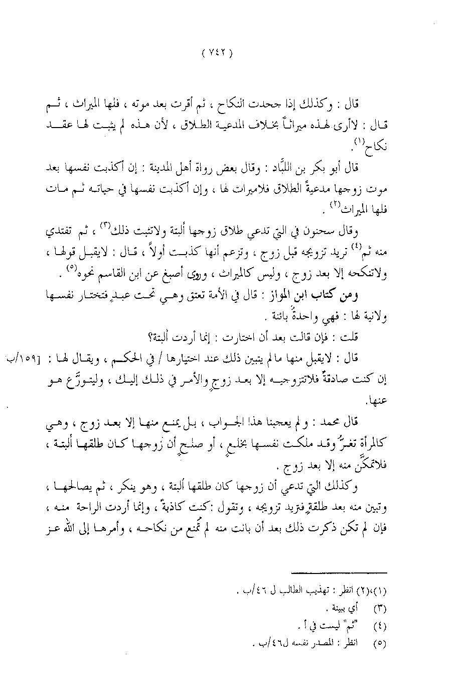 وقال سحنون في التي تدعي طلاق زوجها ألبتة ولا تثبت ذلك، ثم تفتدي منه ثم تريد تزويجه قبل الزوج، وتزعم أنها كذبت أولاً، قال: لا يقبل قولها، ولا تنكحه إلا بعد زوج، وليس كالميراث، وروى أصبغ عن ابن القاسم نحوه.