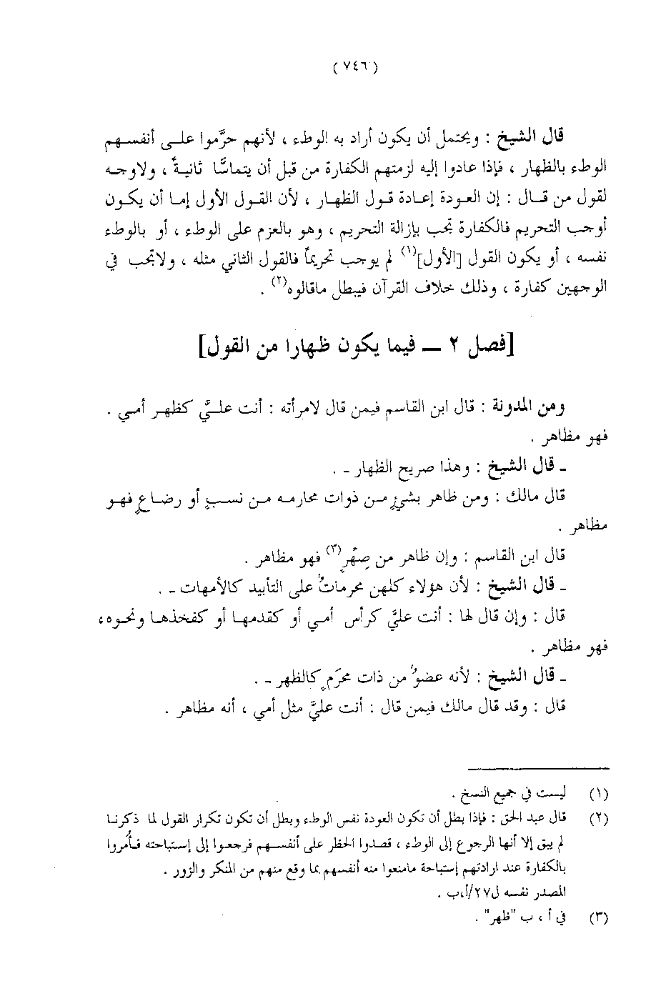 [فصل 2 - فيما يكون ظهاراً من القول]