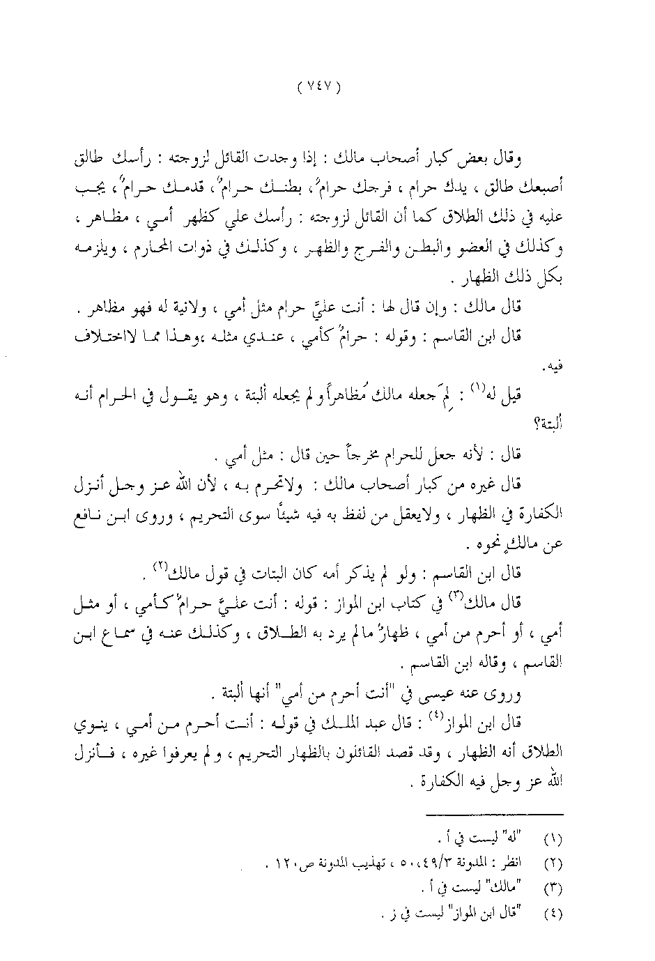 قال غيره من كبار أصحاب مالك: ولا تحرم به، لأن الله عز وجل أنزل الكفارة في الظهار، ولا يعقل من لفظ به شيئاً سوى التحريم، وروى ابن نافع عن مالكٍ نحوه.