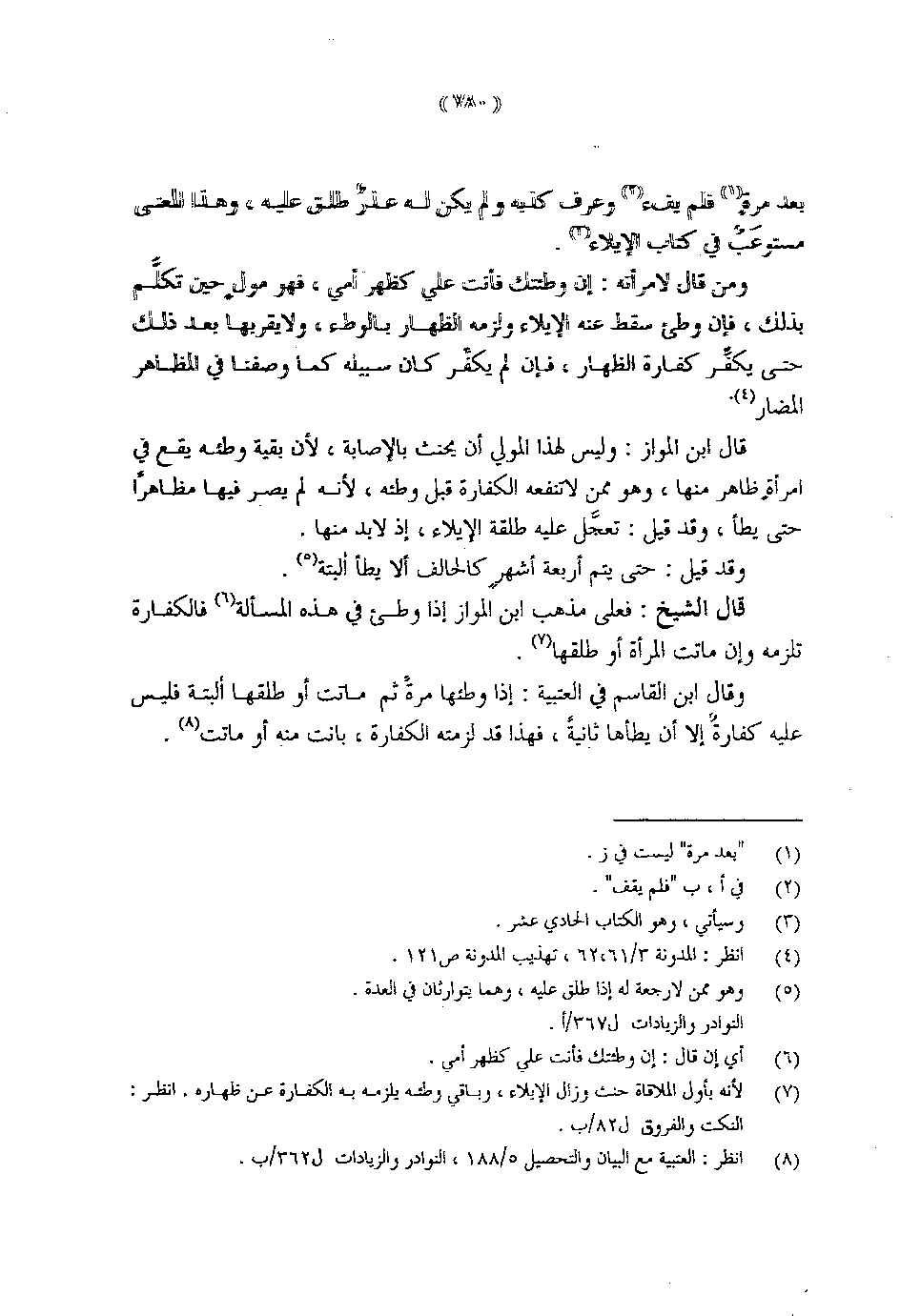 وقال ابن القاسم في العتبية: إذا وطئها مرة ثم ماتت أو طلقها البتة فليس عليه كفارة إلا أن يطأها ثانية، فهذا قد لزمته الكفارة، بانت منه أو ماتت.