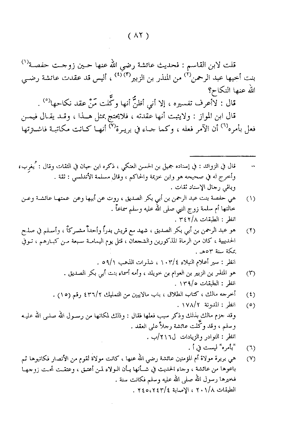 قلت لابن القاسم: فحديث عائشة رضي الله عنها حين زوجت حفصة بنت أخيها عبد الرحمن من المنذر بن الزبير، أليس قد عقدت عائشة رضي الله عنها النكاح؟