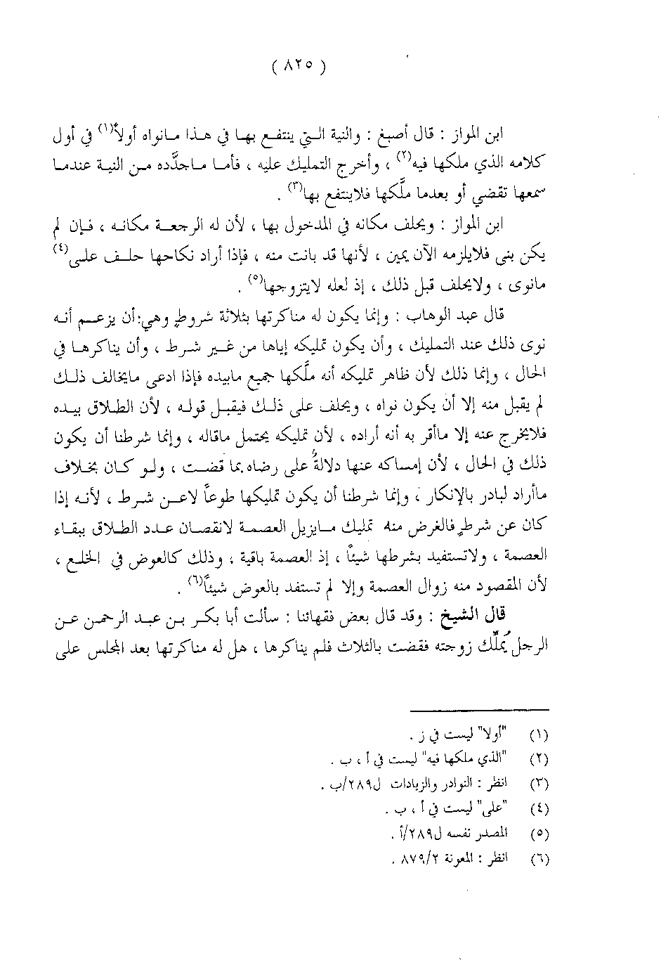 قال الشيخ: وقد قال بعض فقهائنا: سألت أبا بكر بن عبد الرحمن عن الرجل يملك زوجته فقضت بالثلاث فلم يناكرها، هل له مناكرتها بعد المجلس على