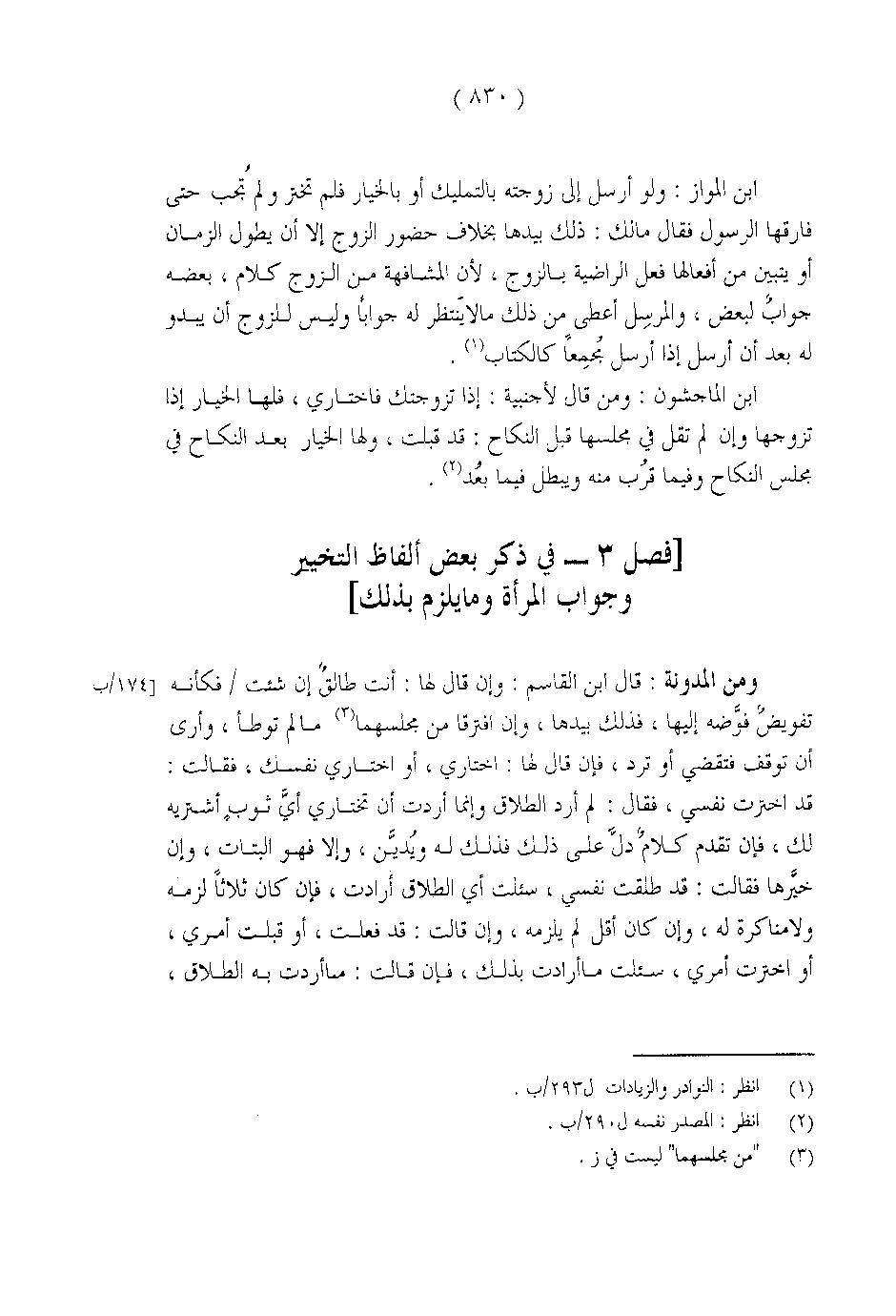 ] فصل 3 - في ذكر بعض ألفاظ التخيير وجواب المرأة وما يلزم بذلك [